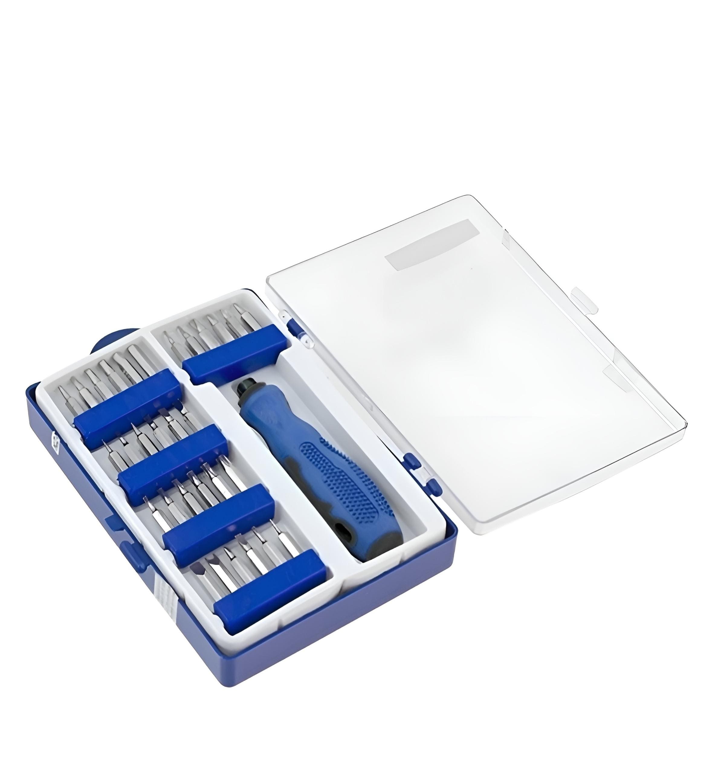 تُستخدم هذه المجموعات بشكل شائع لإصلاح الإلكترونيات والأجهزة الصغيرة وغيرها من المهام التي تتطلب أنواعًا مختلفة من رؤوس المفكات.